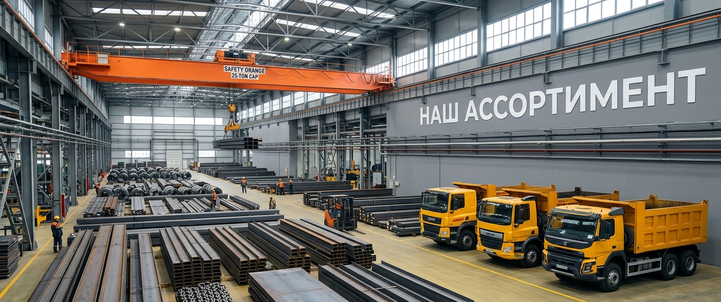 «Широкий ассортимент металла в наличии на складе: арматура всех классов, трубы (круглые, профильные, оцинкованные), балки, швеллеры, уголки и листы. Проволока вязальная и оцинкованная. Быстрая отгрузка и доставка по региону».